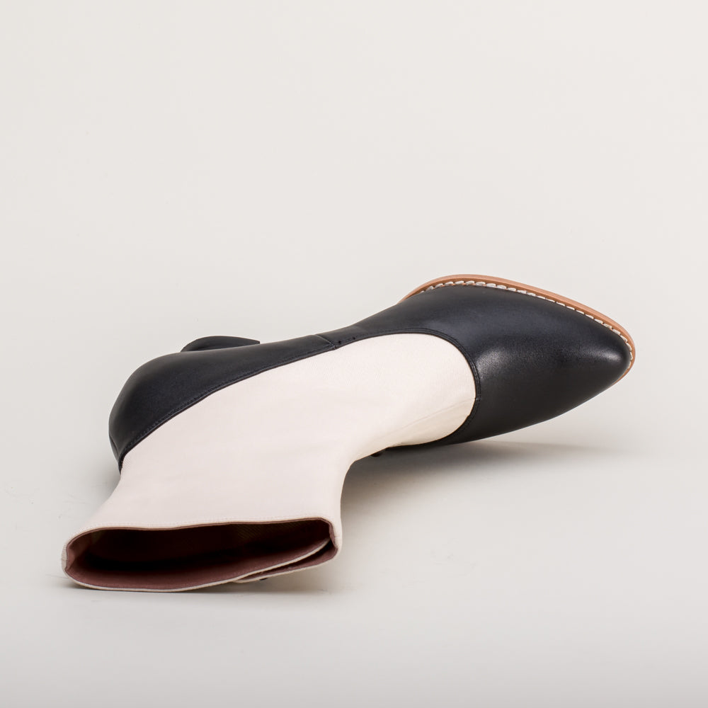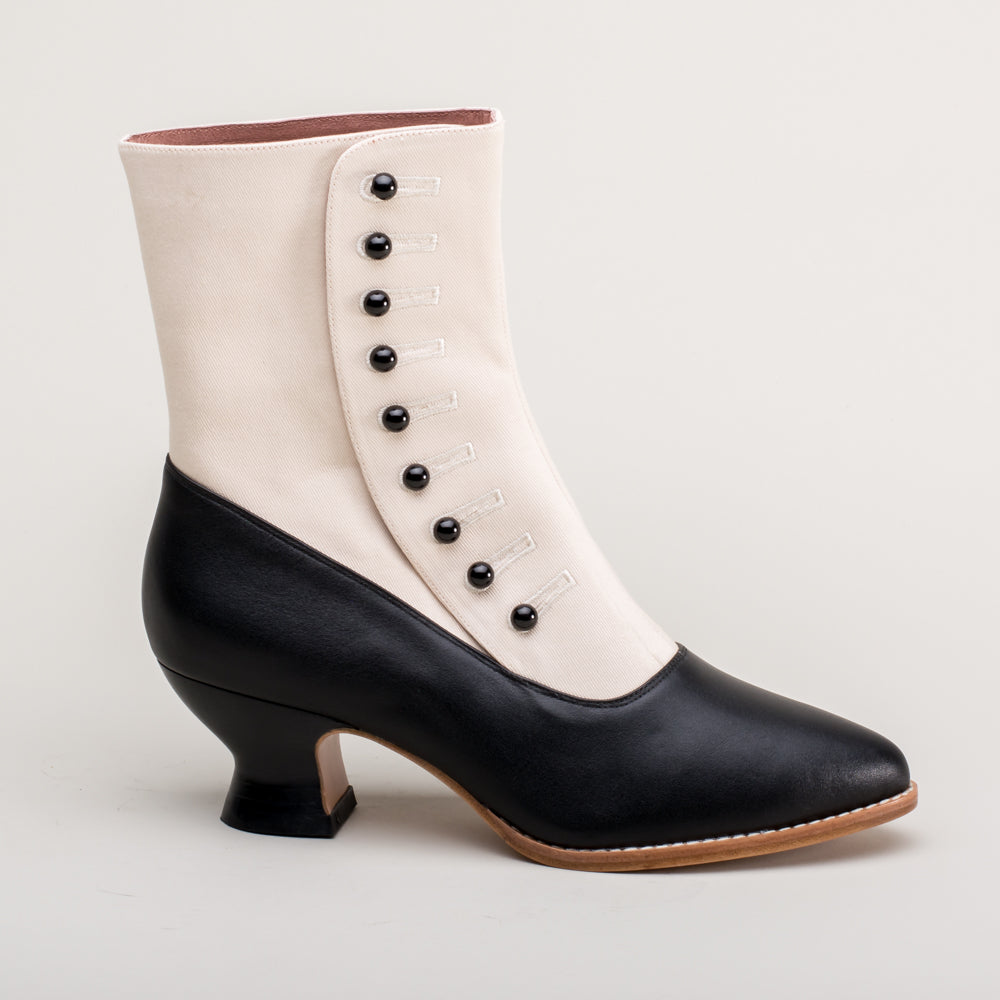 Manhattan Victorian Cloth-Top Button Boots (Ivory/Black)