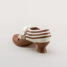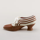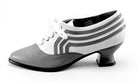 These attractive lace-up shoes have all the style and sass of footwear from c. 1900 through the 1920s and will keep you on your feet and comfortable all day, whether you're attending historical costuming events or walking the streets of New York City. Bernadettes feature our sturdy 2 inch / 5 cm French heel, welted hard-wearing leather soles, pointed toes, and an adjustable lace-up closure, plus all that style with eye-catching contrast stripes on all-leather uppers. Delicious!