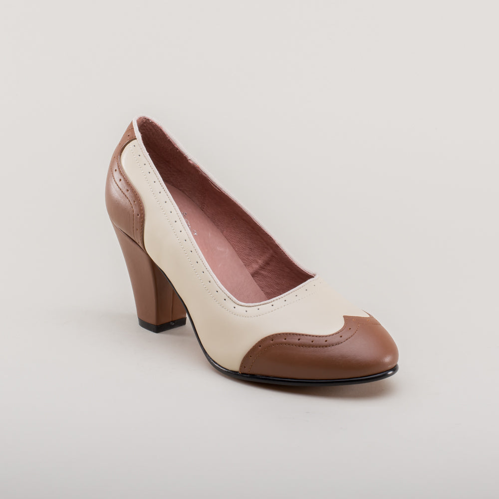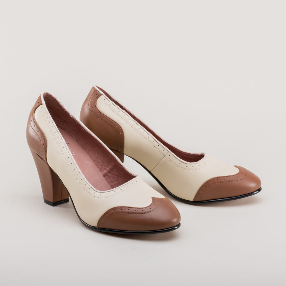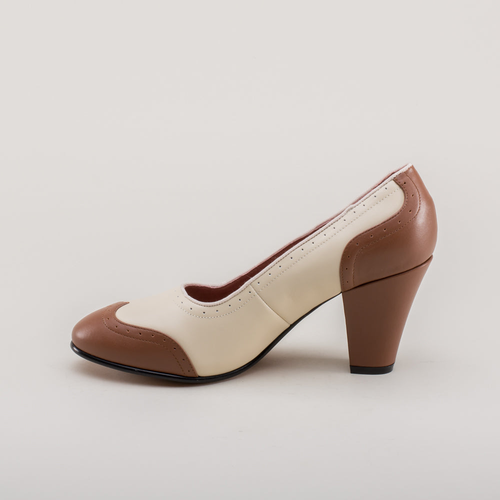 Peggy 1940s Spectator Pumps (Coffee/Cream)