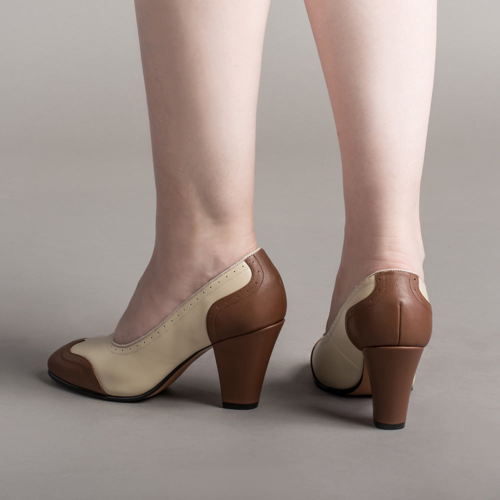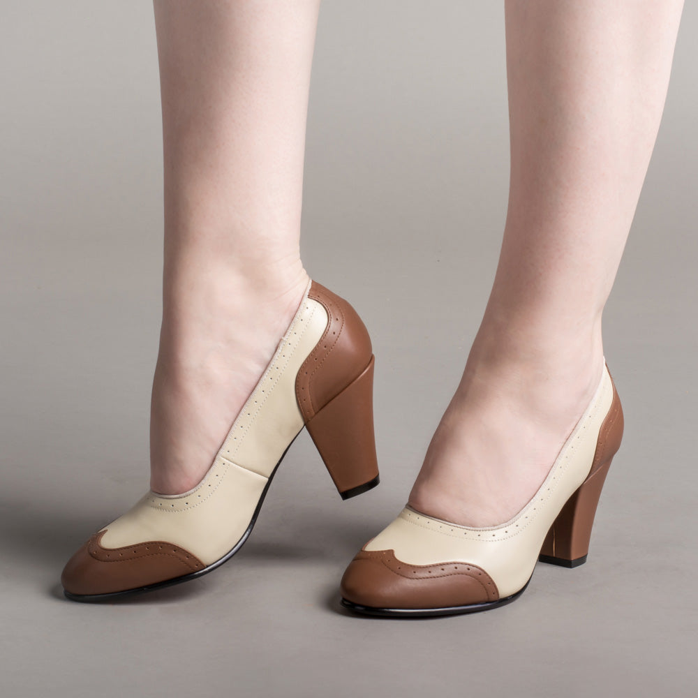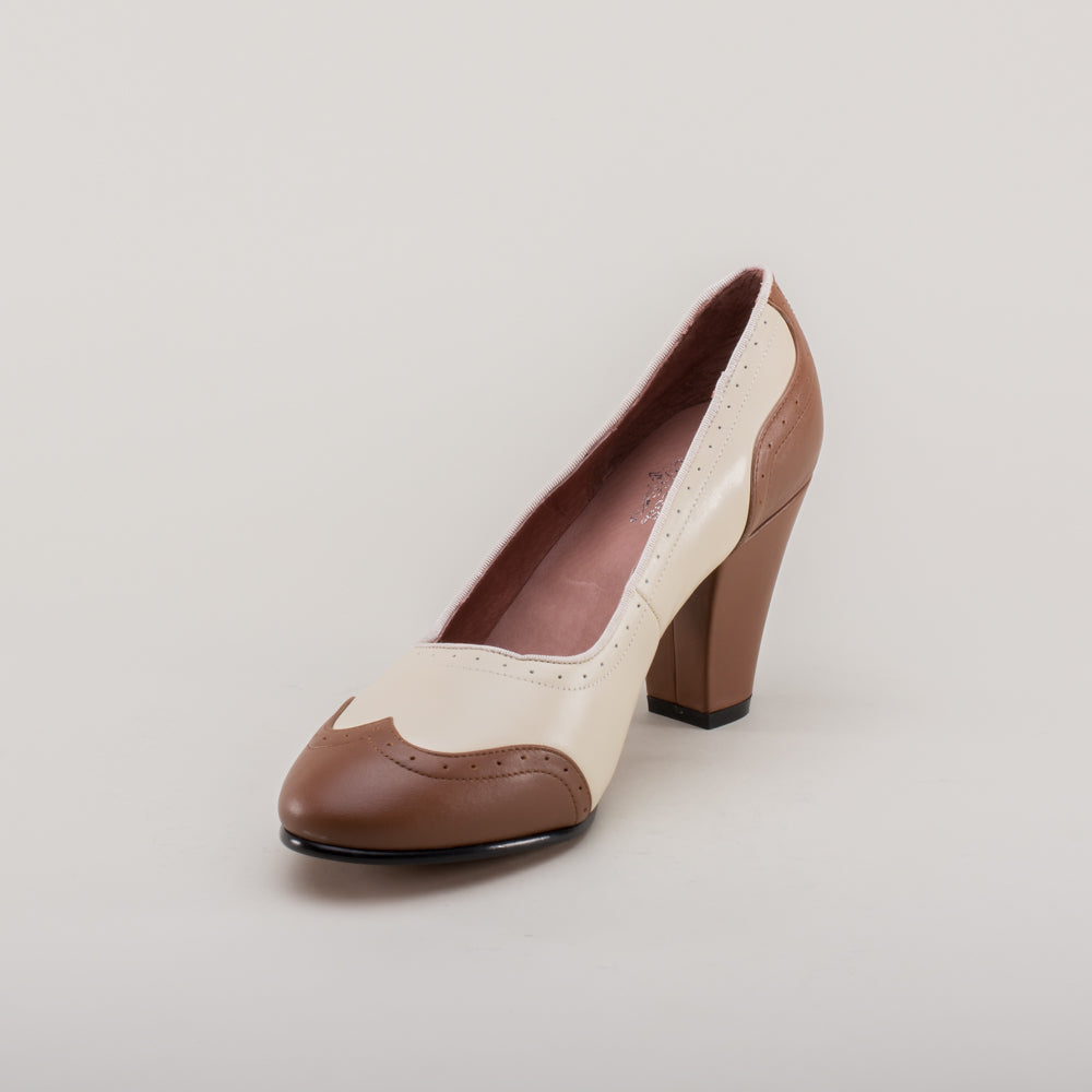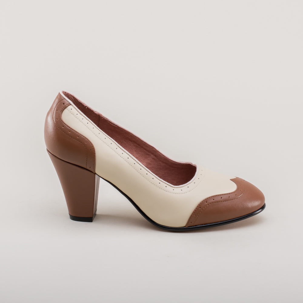 Peggy 1940s Spectator Pumps (Coffee/Cream)