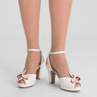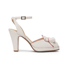 The glamorous platforms of the 1940s come to life with Ava, a veritable vintage knockout. Built on a new period-accurate reproduction last, Ava has a 0.6"/1.5 cm platform under the toe, providing lift and balance to match our custom, perfectly balanced, 4"/10 cm Spanish heels. Ava's uppers are crowned with a detailed, folded leather decorative bow, with smooth leather piping in coordinating colors. Ava's ankle straps are secured with a smart rectangular buckle, just like the originals from the 1940s. Ava pairs with your contemporary wardrobe just as well as your favorite pin-up inspired ensembles.