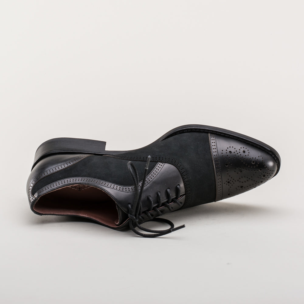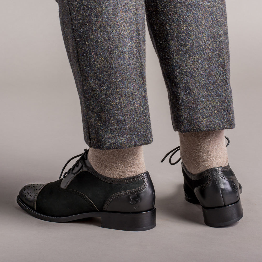 From the creative closet of Dandy Wellington come these gorgeous vintage cap toe oxfords made in rich and sophisticated nubuck and smooth leather. The Gladys oxfords feature fine brogue detailing including a clever "W" design on the cap toe along with the signature Dandy Wellington logo stamp on the heels.
