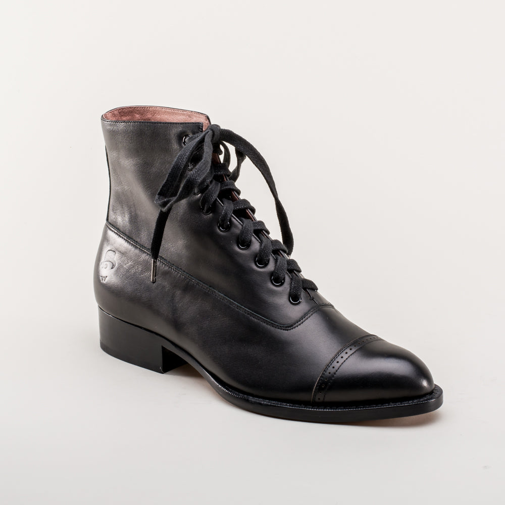 Rainey Vintage Lace-Up Boots (Black)